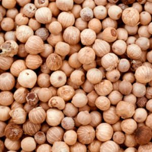 A pimenta branca possui inúmeros benefícios, como ação antioxidante, auxílio no emagrecimento, efeito analgésico, dotadas de vitaminas A e K, ajudando na digestão. Possui sabor mais suave que da pimenta preta e é usada para pratos com coloração mais clara, para não manchá-los, além de auxiliar no temperos de carnes, peixes, frangos e porcos. Salpicadas sobre purês, ovos, sufles e molhos. São extremamente saborosas. Aproveite a versão em grão!